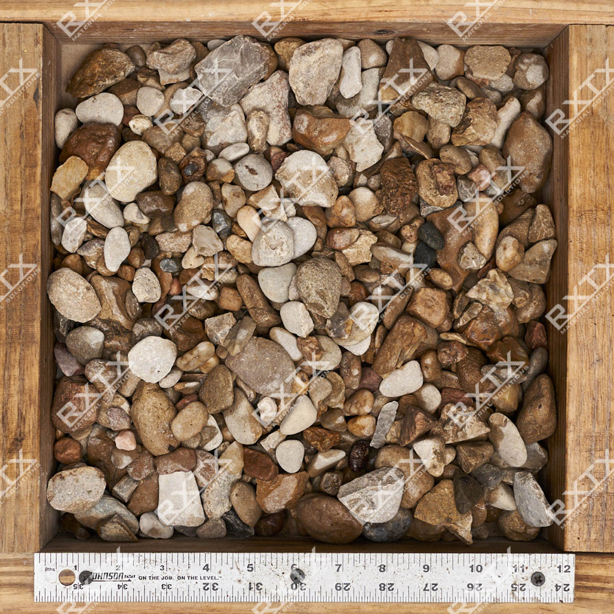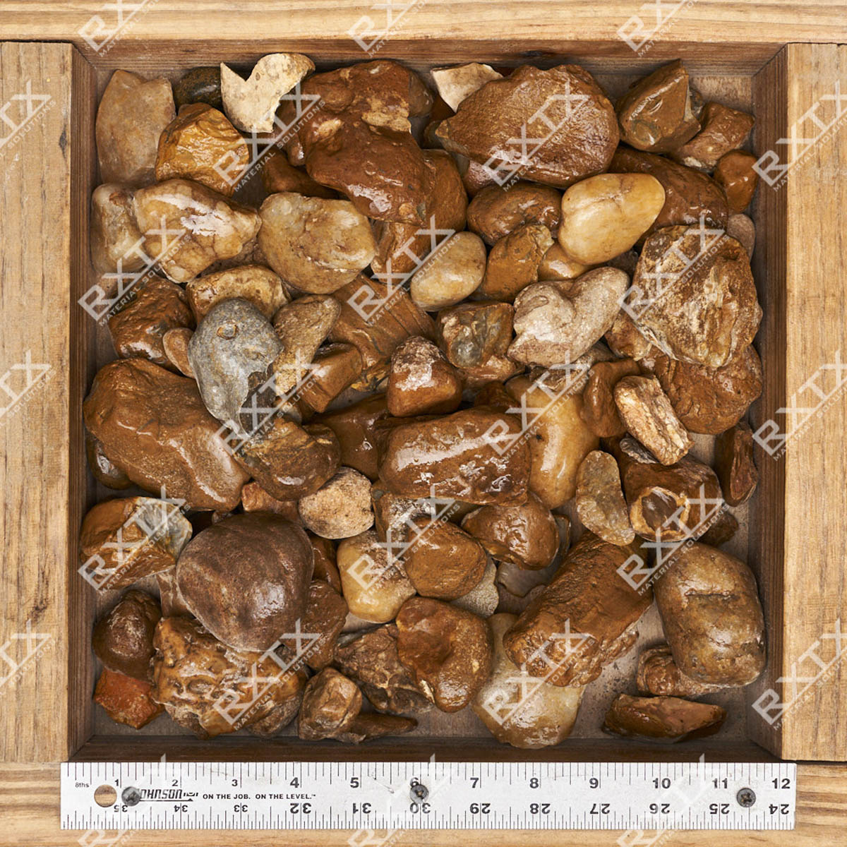 Texas Blend River Rock has an overall light brown to tan appearance, most of the gravel is a mix of browns and tan. Secondary colors that come out are blacks and reds. With a size range of 3/8” to 5" Texas Blend River Rock can be used as a concrete aggregate, a drainage gravel in conjunction with filter cloth and as a decorative gravel in landscapes.